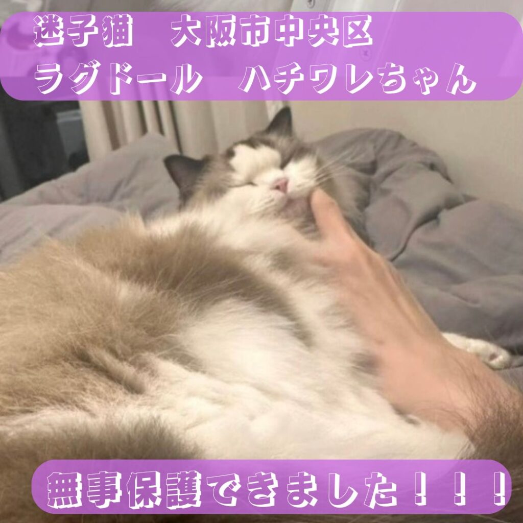 【大阪市中央区|ハチワレちゃん 無事保護できました】