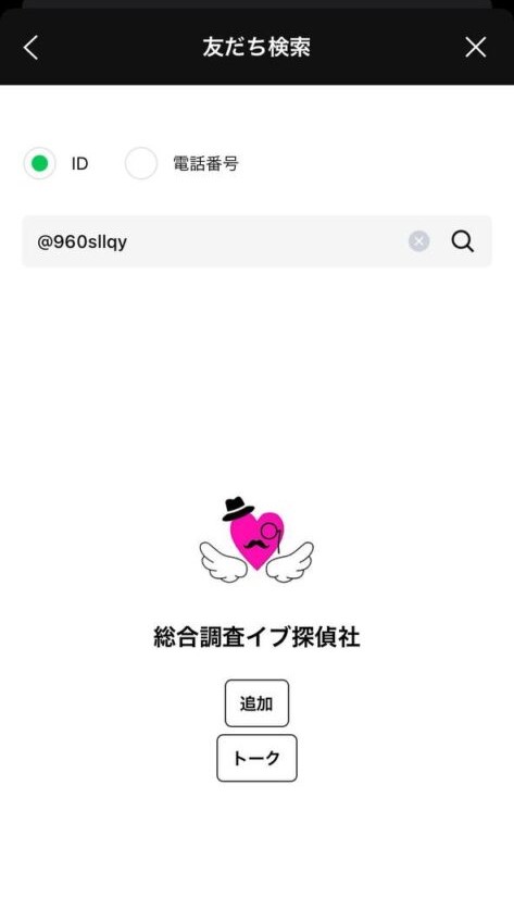 LINEの友達追加ページにてID検索を選択し、ID:【@960sllqy】を検索していただくと友達追加ができます。